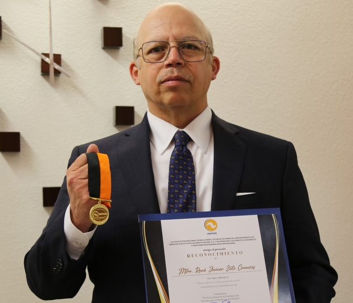 Ciudad Juárez, Chihuahua.- El Abogado General y Catedrático de la Universidad Autónoma de Ciudad Juárez, Maestro René Javier Soto Cavazos, fue galardonado con el Premio Nacional a la Docencia Jurídica 2023 que otorga la Asociación Nacional de Facultades, Escuelas de Derecho, Departamentos de Derecho e Institutos de Investigación Jurídica A.C. (ANFADE).
