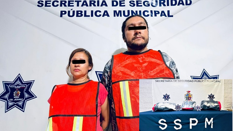 Ciudad Juarez, Chihuahua – Elementos de la Secretaría de Seguridad Pública Municipal adscritos en la Estación de Policía del Distrito Poniente, incautaron una importante cantidad de droga con la detención de Arely D. F. y Omar Oswaldo L. P., quienes fueron consignados por su presunta responsabilidad en la comisión de delitos contra la salud.