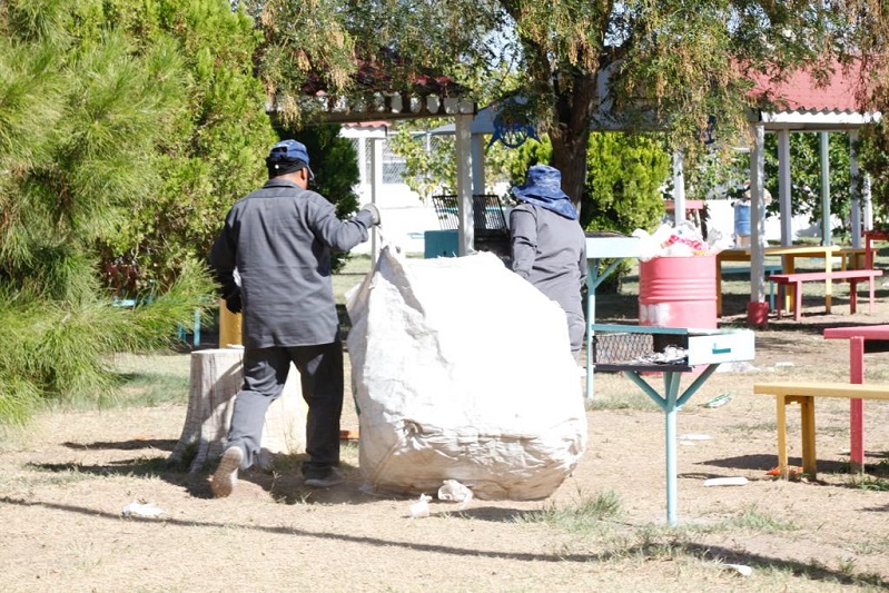 Comentó que hoy mandaron dos cuadrillas del equipo de Limpia con alrededor de 30 personas que se encargan del mantenimiento del lugar, para retirar principalmente cajas de pizza, envases de refrescos y desechables.