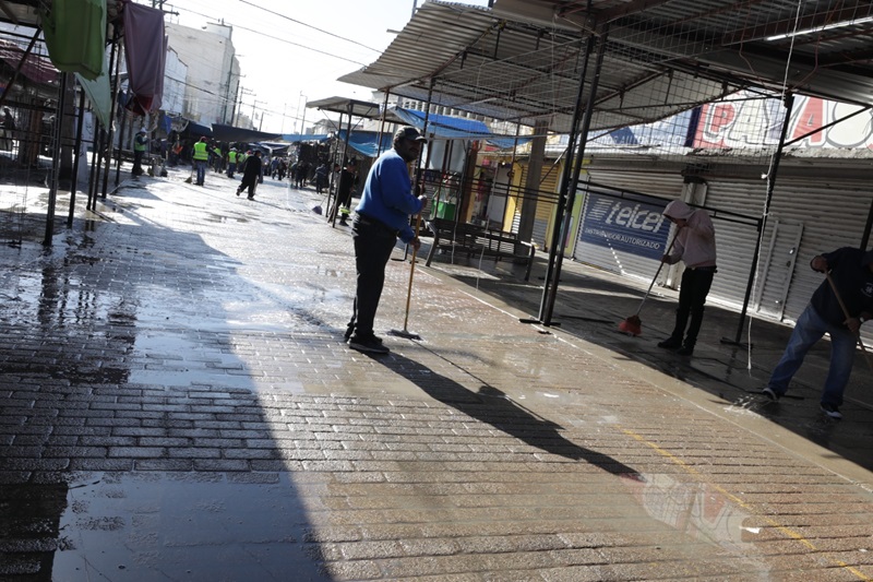 En dicho operativo se contó con el apoyo de pipas de agua tratada de la Dirección de Parques y Jardines, para la limpieza de lavado a presión del suelo del corredor comercial.
