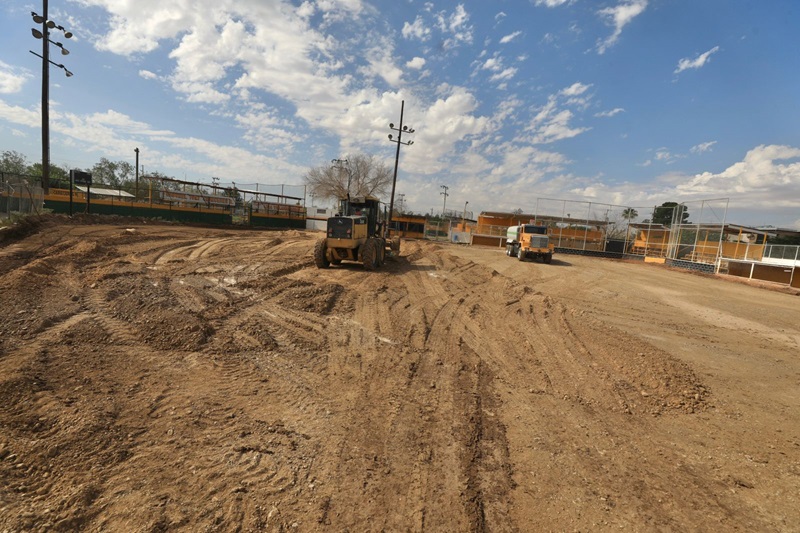 Ciudad Juarez, Chihuahua – Continuando con el mejoramiento de espacios públicos, la Dirección General de Obras Públicas, a través de la Dirección de Edificación, trabaja en la rehabilitación del campo de béisbol infantil Villahermosa, ubicado entre las calles Pedro Rosales de León y Villahermosa.