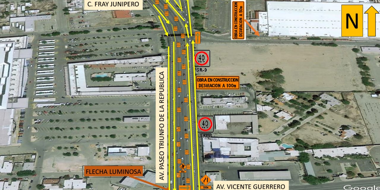 Esta sección abarcará desde Vicente Guerrero hasta Fray Junípero, ocupando los carriles centrales de ambos sentidos.