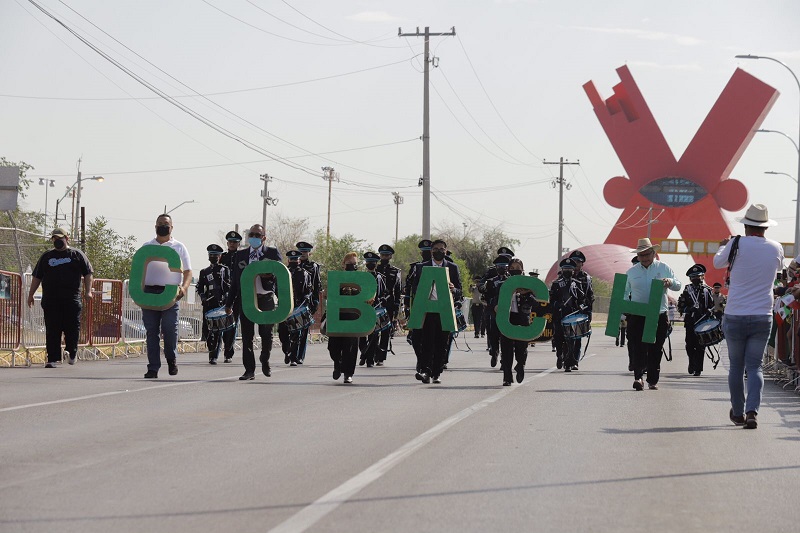 Ahí las familias juarenses disfrutaron de las bandas de guerra y escolta de la Universidad Autónoma de Ciudad Juárez (UACJ), del Pentatlón, del Colegio de Bachilleres (Cobach), del Centro de Bachillerato Tecnologico Industrial y de Servicios 128, y de la Secundaria Estatal 8360.