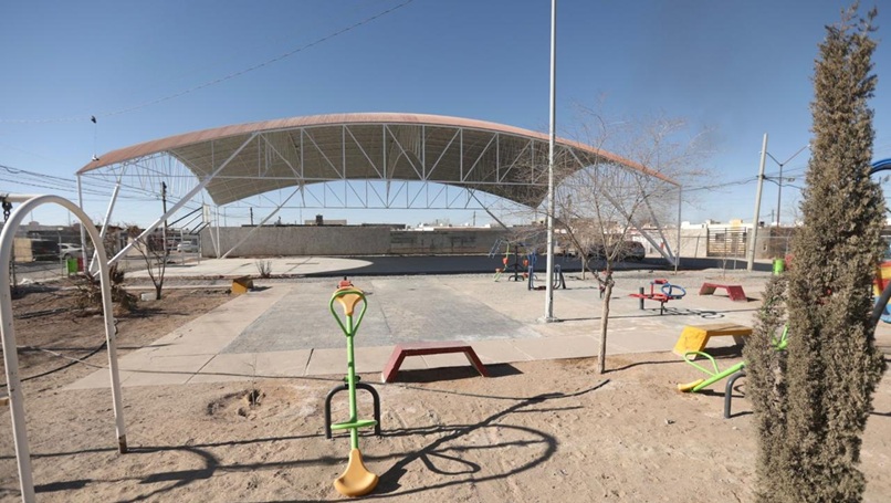 Ciudad Juarez, Chihuahua – Como parte de las acciones para mejorar los espacios públicos, la Dirección General de Obras Públicas trabaja en la construcción de un domo en el parque Sol de la Colina, en la colonia Praderas del Sol, obra en la que ya se lleva un avance del 80 por ciento.