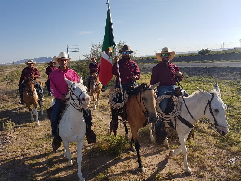 Ciudad Juárez, Chihuahua – Llevando la Bandera Nacional Mexicana al frente, este día siguió avanzando la Gran Cabalgata Villista.