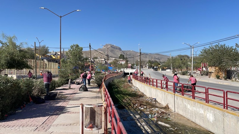 Ciudad Juarez, Chihuahua – Personal de la Dirección de Limpia y miembros de la asociación Fondo Unido Chihuahua trabajan coordinados en la limpieza de 20 espacios en distintos puntos de la ciudad, especialmente en parques y camellones.