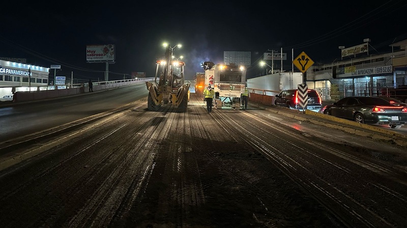 Ciudad Juarez, Chihuahua – Como parte del programa de mantenimiento de la avenida Tecnológico, la Dirección General de Obras Públicas comenzó anoche con los trabajos de fresado en el puente de esta avenida en el cruce con la Manuel J. Clouthier, interviniendo ambos carriles de la vialidad.