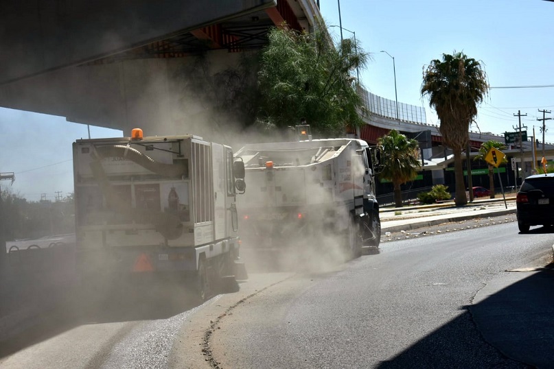 Ciudad Juárez, Chihuahua – Personal de la Dirección de Limpia continúa trabajando con las barredoras mecánicas en la limpieza y recolección de tierra de arrastre en las distintas vialidades de la ciudad, tarea con la que han limpiado 15,268 kilómetros de calles durante el pasado mes de junio.
