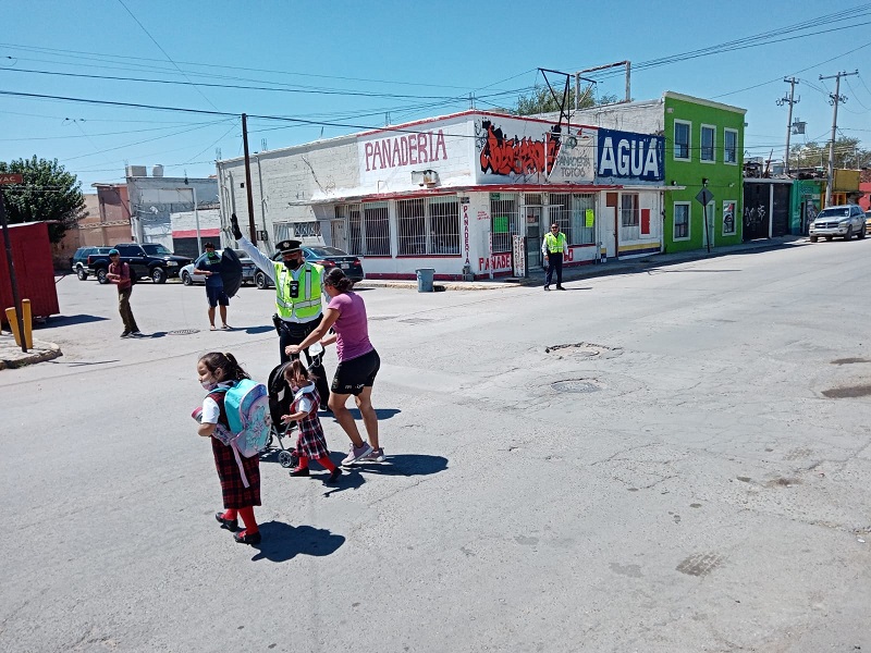 Ciudad Juárez, Chihuahua – La Coordinación General de Seguridad Vial continúa brindando apoyo y resguardando la integridad física de estudiantes y docentes en escuelas de la región, por medio de operativos escolares formados por agentes y padres de familia que integran las brigadas escolares de la corporación.