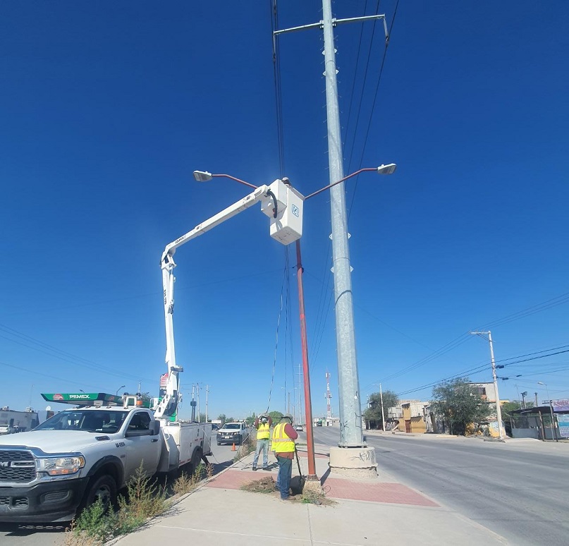 Ciudad Juárez, Chihuahua – Personal operativo de la Dirección de Alumbrado Público continúa trabajando en rehabilitar la instalación eléctrica y poner en servicio de las luminarias que se encuentran en el bulevar Santiago Troncoso, en el tramo de la avenida De las Torres a la calle Miguel de la Madrid.