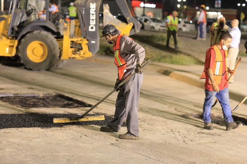 Ciudad Juárez, Chihuahua – Luego de que el Presidente Municipal Cruz Pérez Cuéllar, diera el banderazo de arranque del Programa de Bacheo Emergente la noche del lunes, cuadrillas de la Dirección General de Obras Públicas continuaron esta mañana con la reparación de vialidades.