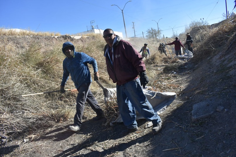 Ciudad Juarez, Chihuahua – Tras dos semanas de arduo trabajo, personal de la Dirección de Limpia continúa con las labores de limpieza en la acequia ubicada en la calle Benemérito de las Américas, en el tramo de la calle Valentín Fuentes hasta el bulevar Óscar Flores, en la colonia Infonavit Casas Grandes.