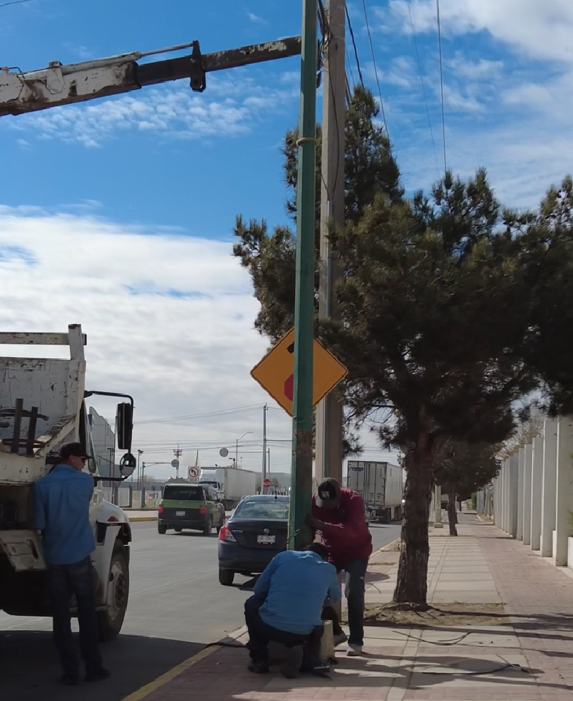 Ciudad Juárez Chihuahua – Personal de la Dirección de Alumbrado Público continúa realizando labores de rehabilitación y mantenimiento en la instalación eléctrica de la avenida Enrique Pinoncelli.