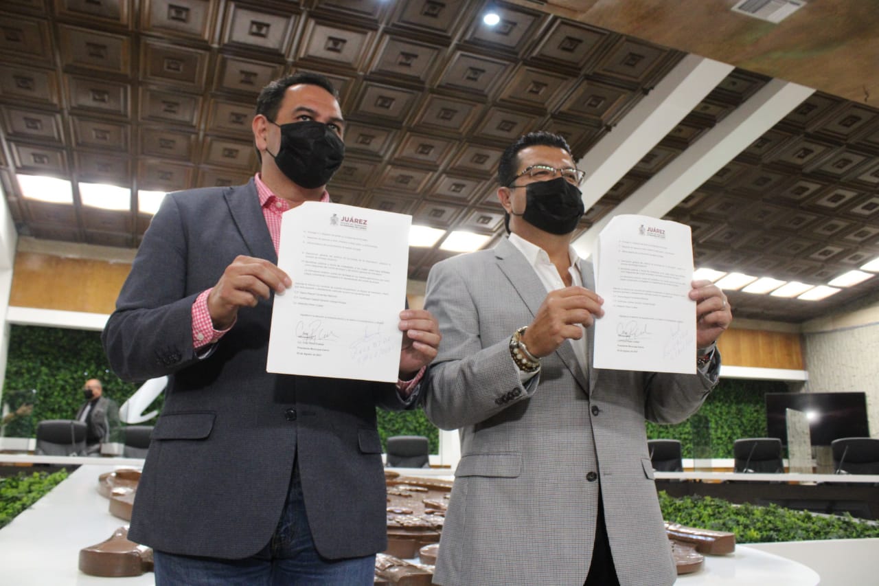 Ciudad Juárez, Chihuahua.- Los alcaldes Cruz Pérez Cuéllar y Armando Cabada Alvidrez, iniciaron con el proceso de entega-recepción del Gobierno Municipal.