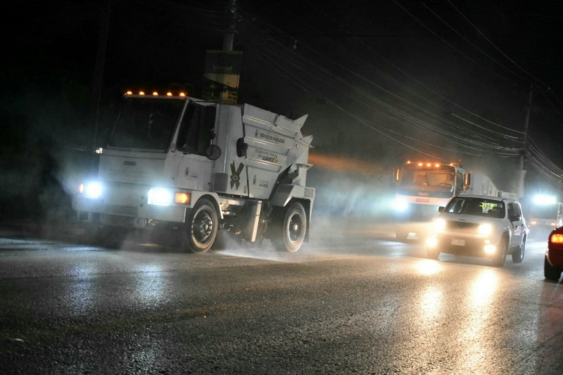 Ciudad Juárez, Chihuahua – La Dirección General de Servicios Públicos y la Coordinación de Administración y Control de Proyectos del Municipio, llevaron la Cruzada Nocturna al corredor comercial Valle del Sol.