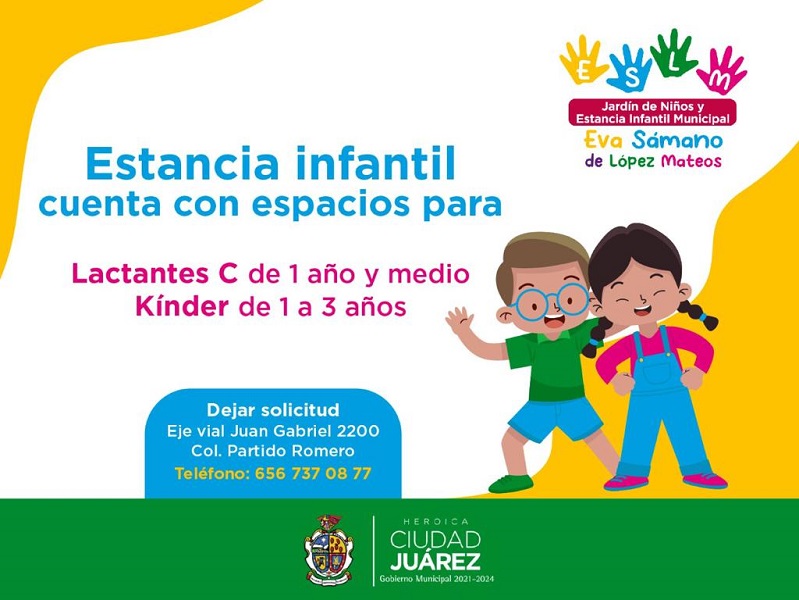 Los interesados deben acudir a la estancia infantil ubicada en el Eje Vial Juan Gabriel número 2200, en la colonia Partido Romero, o comunicarse al número telefónico 656-737-0877 para hacer una cita.