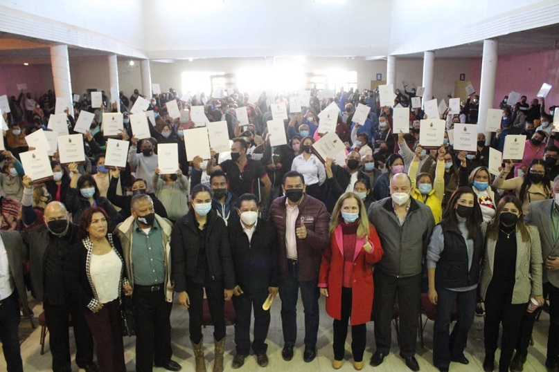 Las primeras personas en recibir su título de propiedad fueron Emma Alvarado, habitante de la colonia Plutarco Elías Calles, así como María Concepción Mendoza Gámez, de la colonia Juanita Luna. También recibieron su título y escrituras las familias de las colonias Tierra Nueva II, Olivia Espinoza, Felipe Ángeles, Frida Khalo, Carlos Castillo Peraza, y La Conquista, entre otras.