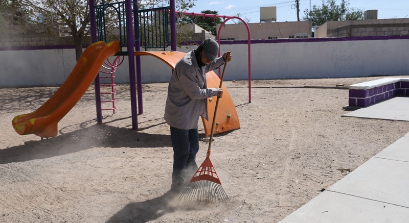 Ciudad Juarez, Chihuahua – Con el objetivo de brindar espacios agradables a la comunidad, varias cuadrillas de la Dirección de Parques y Jardines realizaron distintas labores de conservación en dos parques ubicados en el fraccionamiento Cerradas de Oriente.