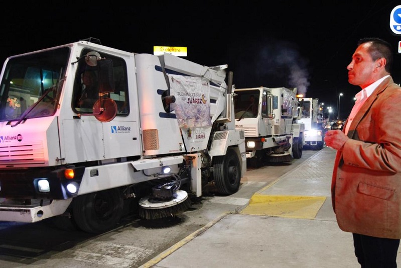 Ciudad Juárez, Chihuahua – Con el propósito de seguir mejorando la imagen urbana de la ciudad, la Dirección General de Servicios Públicos llevó a cabo esta noche la edición número 13 de la Cruzada Nocturna por Juárez, en el bulevar Zaragoza arrancando en la glorieta de la avenida de Los Aztecas.