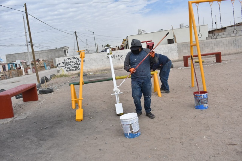 Ciudad Juarez, Chihuahua – Personal de la Dirección de Parques y Jardines trabajó en la limpieza y mantenimiento de tres parques ubicados en el fraccionamiento Las Haciendas, dio a conocer Daniel Iván Zamarrón, Saldaña, director del Parques y Jardines.