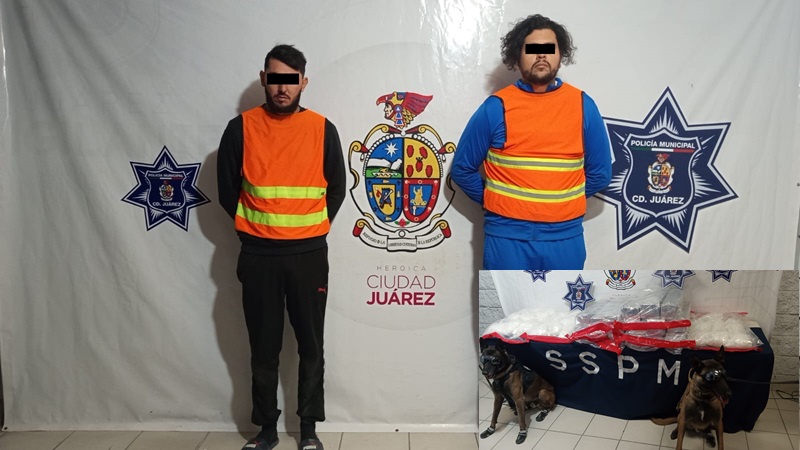 Ciudad Juarez, Chihuahua – La Secretaría de Seguridad Pública Municipal da a conocer que la metanfetamina denominada cristal que fue decomisada por elementos adscritos al grupo K-9, el fin de semana con el arresto de Juan Antonio G. H. y Raúl C. P., esta evaluado en aproximadamente 44 millones de pesos.