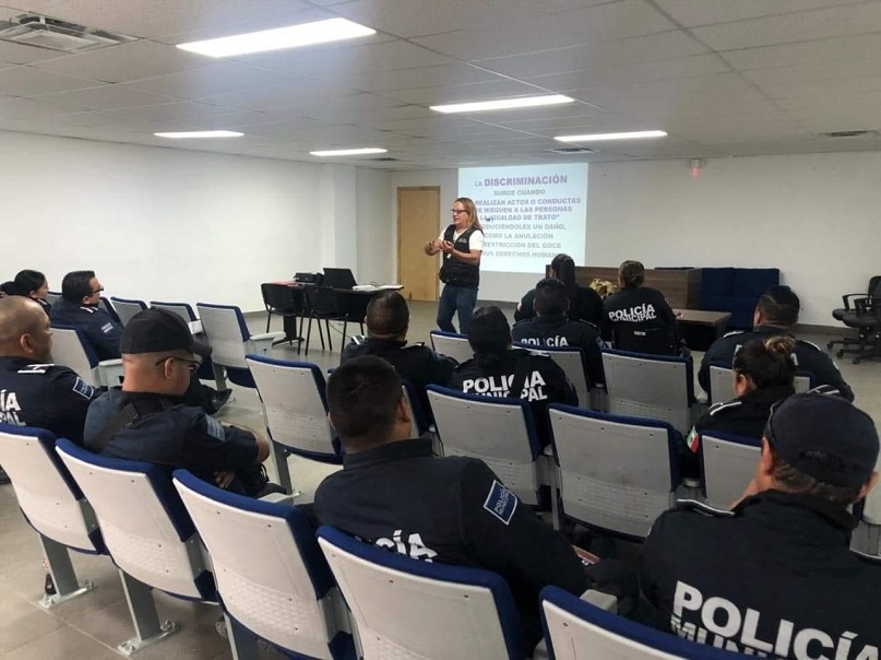 Hasta el momento suman 825 agentes que han sido capacitados en coordinación con el Instituto Municipal de las Mujeres (IMM), Consejo Municipal para Prevenir la Discriminación (COMUPRED), la Comisión Estatal de los Derechos Humanos (CEDH) y el Sistema de Protección Integral de los Derechos de las Niñas, Niños y Adolescentes.