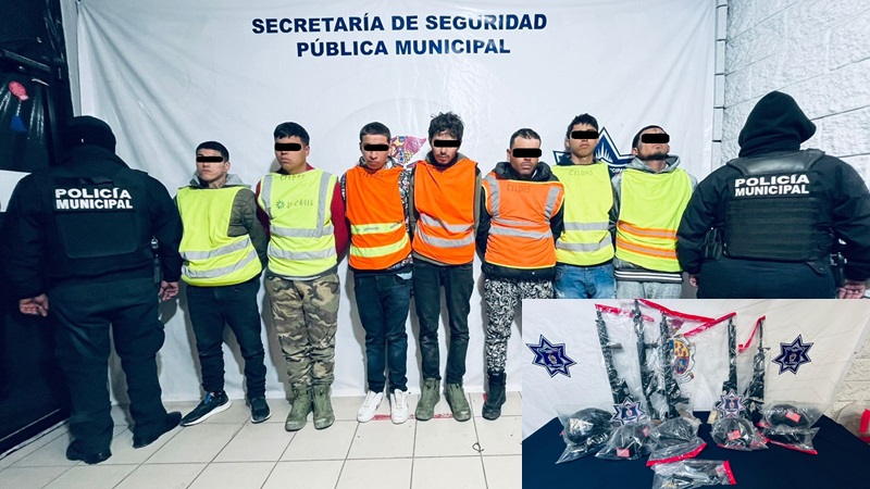 Ciudad Juarez, Chihuahua – Agentes de la Secretaría de Seguridad Pública Municipal arrestaron a William Ignacio R. B., Jesús Ricardo D. P., Vicente G. C., César Manuel H. S., Carlos Alejandro R. C., Mario Francisco D., Brayan Ricardo G. C. y un adolescente por su presunta responsabilidad en la comisión de delitos contra la ley federal de armas de fuego y explosivos.