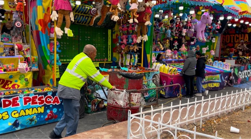 Ciudad Juarez, Chihuahua – Personal de la Dirección de Limpia desplegó un intenso operativo de aseo y mantenimiento en la Zona Centro de la ciudad, con motivo de la festividad católica por el Día de la Virgen de Guadalupe.
