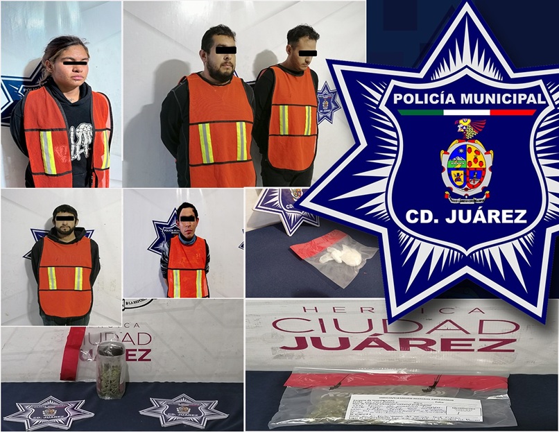 Ciudad Juarez, Chihuahua – Elementos de la Secretaría de Seguridad Pública Municipal arrestaron a cinco personas, por su presunta responsabilidad en la comisión de delitos contra la salud en su modalidad de narcomenudeo.