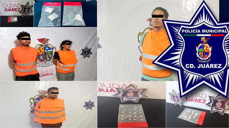 Ciudad Juárez, Chihuahua – Elementos de la Secretaría de Seguridad Pública Municipal arrestaron a cinco personas, por su presunta responsabilidad en la comisión de delitos contra la salud.