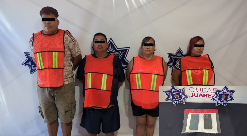 Ciudad Juarez, Chihuahua – Agentes de la Secretaría de Seguridad Pública Municipal arrestaron a César L. C., Juan Carlos M. H., Josefina E. V. y Lorena Yamilec L. E., por su presunta responsabilidad en la comisión del delito de promoción de conductas ilícitas, y desobediencia y resistencia de particulares.
