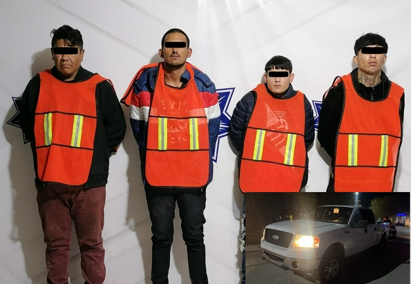 Ciudad Juarez, Chihuahua – Elementos de la Secretaría de Seguridad Pública Municipal arrestaron a Aarón Abel C. R., Luis Carlos G. B., Ángel Gabriel L. H. y Salvador E. M., por su presunta responsabilidad en la comisión del delito de robo y/o lo que resulte.