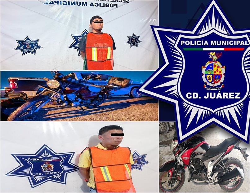 Ciudad Juarez, Chihuahua – Elementos de la Secretaría de Seguridad Pública Municipal arrestaron a dos sujetos por su presunta responsabilidad en la comisión del delito de posesión de vehículo con reporte de robo en hechos distintos