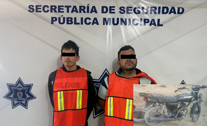 Ciudad Juarez, Chihuahua – Elementos de la Secretaría de Seguridad Pública Municipal arrestaron a Lucio V. H. y Víctor Arturo G. B., por su presunta responsabilidad en la comisión del delito de posesión de vehículo con pre denuncia por robo.