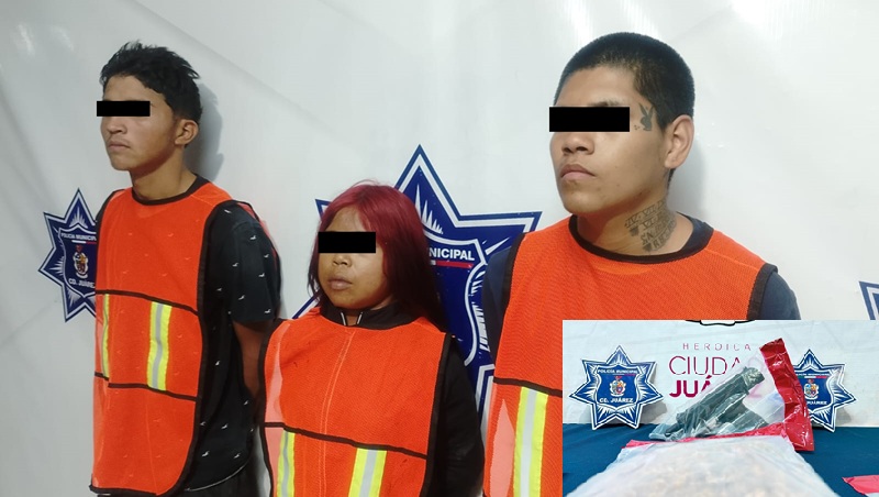 Ciudad Juarez, Chihuahua – Agentes de la Secretaría de Seguridad Pública Municipal detuvieron a Raúl Aarón M. B., por su presunta responsabilidad en la comisión de los delitos de homicidio en grado de tentativa, contra la salud, violación a la ley federal de armas de fuego y explosivos, mientras que Perla Janeth C. E. y Adrián René C. M. por delitos contra la salud y desobediencia y resistencia de particulares.