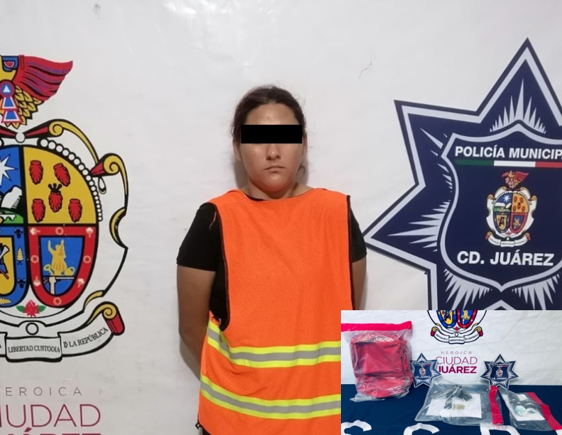 Ciudad Juárez, Chihuahua – Elementos de la Secretaría de Seguridad Pública Municipal arrestaron a Itzell Edith S. O., por su presunta responsabilidad en la comisión de delitos contra la ley federal de armas de fuego y explosivos y delitos contra la salud.