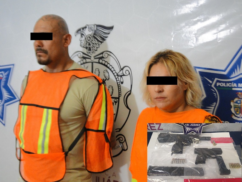 Ciudad Juárez, Chihuahua – Agentes de la Secretaría de Seguridad Pública Municipal arrestaron a Salvador R. V. y Claudia Imelda B. B., por su presunta responsabilidad en la comisión de delitos contra la ley federal de armas de fuego y explosivos.