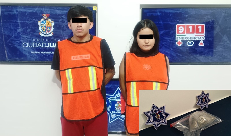 Ciudad Juarez, Chihuahua – Elementos de la Secretaría de Seguridad Pública Municipal arrestaron a Eder Alejandro L. G. y a Ivonne Guadalupe G. G., por su presunta responsabilidad en la comisión del delito en posesión de vehículo con reporte de robo y delitos contra la salud.