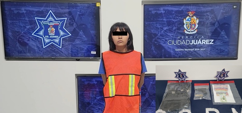 Ciudad Juarez, Chihuahua – Agentes de la Secretaría de Seguridad Pública Municipal adscritos al Distrito Poniente, capturaron a Amy Janine R. originaria de El Paso Texas y a su cómplice un adolescente, por su probable responsabilidad en la comisión del delito de robo con violencia y por delitos contra la ley federal de armas de fuego y explosivos.