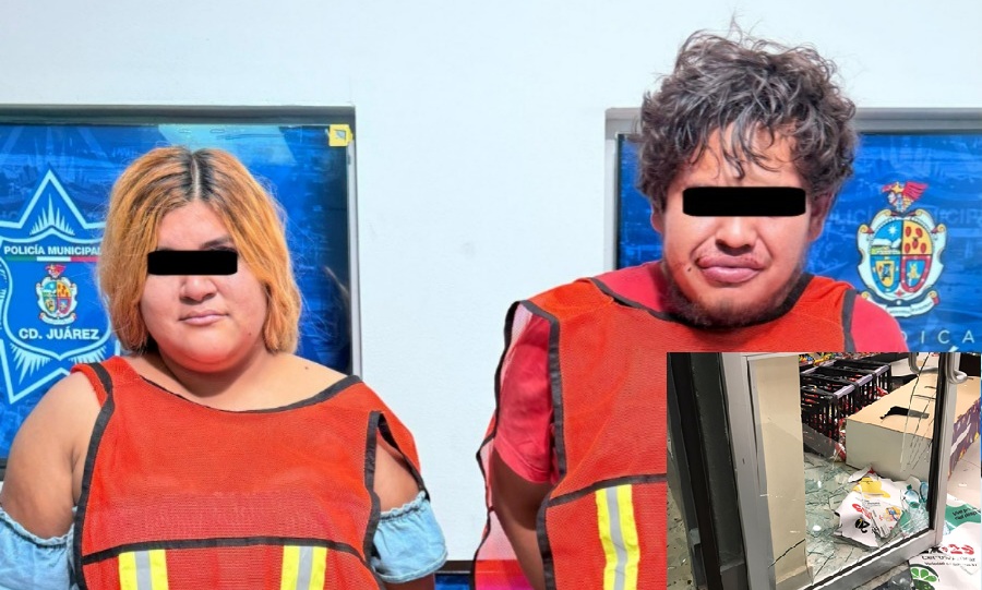 Ciudad Juarez, Chihuahua – Elementos de la Secretaría de Seguridad Pública Municipal arrestaron a Cristian Joel G. S. y Angélica E., por su presunta responsabilidad en la comisión del delito de daños a casa comercial.