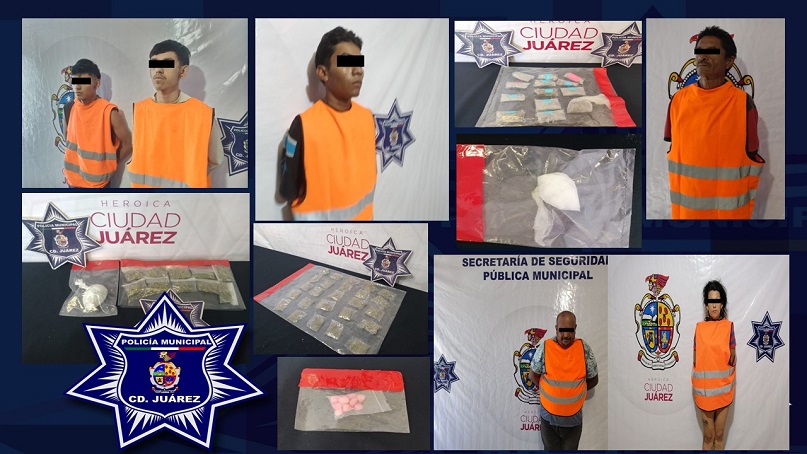 Ciudad Juárez, Chihuahua – Elementos de la Secretaría de Seguridad Pública Municipal arrestaron a seis personas, por su presunta responsabilidad en la comisión de delitos contra la salud.