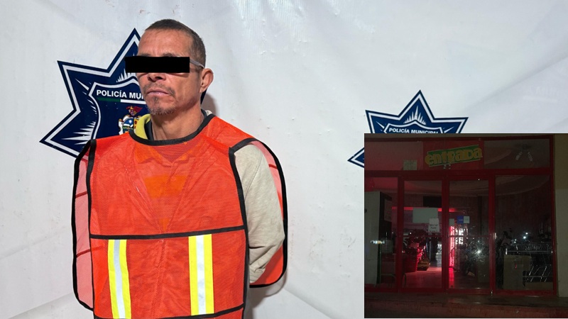 Agentes municipales que realizaban labores de prevención y vigilancia en la avenida 16 de Septiembre y calle Noche Triste, en la zona Centro, sorprendieron a un sujeto causando daños a las instalaciones de un negocio de venta de ropa.