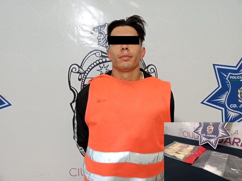Ciudad Juárez, Chihuahua –  Agentes de la Secretaría de Seguridad Pública Municipal arrestaron a Ismael Adrián O. S., por su presunta responsabilidad en la comisión de delitos contra la salud y promoción de conductas ilícitas.