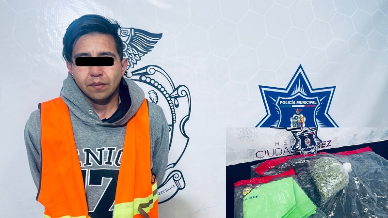 Ciudad Juárez, Chihuahua – Agentes de la Secretaría de Seguridad Pública Municipal arrestaron a Kevin V. M., por su presunta responsabilidad en la comisión de delitos contra la salud.
