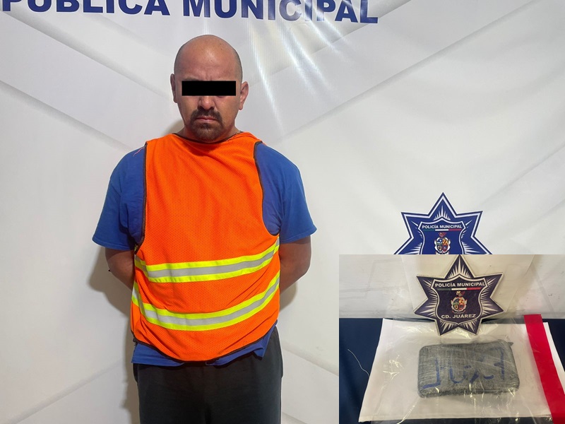 Ciudad Juarez, Chihuahua – Agentes de la Secretaría de Seguridad Pública Municipal arrestaron a Carlos Alejandro P. N., por su presunta responsabilidad en la comisión de delitos contra la salud.