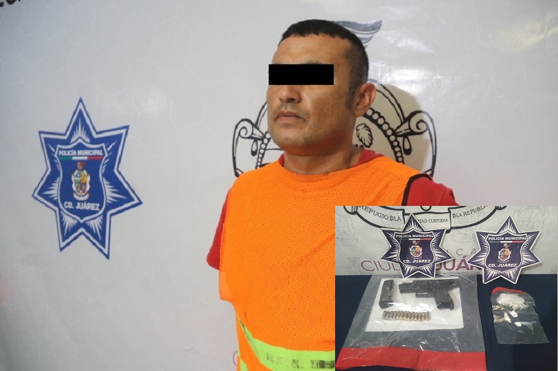 Ciudad Juárez, Chihuahua – Elementos de la Secretaría de Seguridad Pública Municipal arrestaron a Jorge Octavio T. T., por su presunta responsabilidad en la comisión de delitos contra la ley federal de armas de fuego y explosivos y contra la salud.
