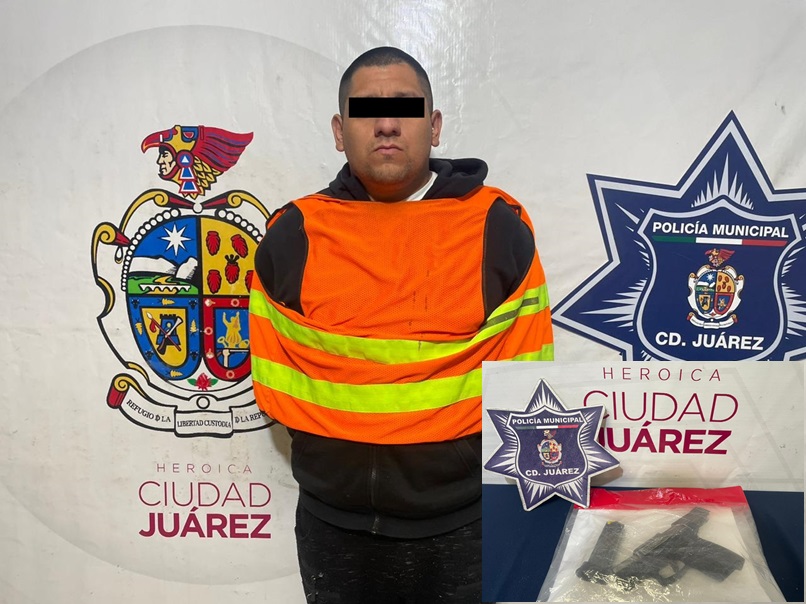 Ciudad Juarez, Chihuahua – Agentes de la Secretaría de Seguridad Pública Municipal arrestaron a Alfonso A. P., por su presunta responsabilidad en la comisión de delitos contra la ley federal de armas de fuego y explosivos.