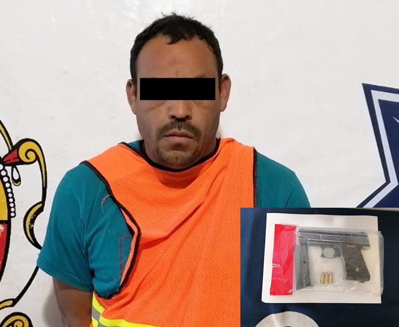 Motivo por el cual fue abordado metros más adelante por protocolos de seguridad y al realizarle una inspección preventiva se le localizó fajada a la altura de la cintura un arma de fuego calibre .9 milímetros, con un cargador abastecido con tres cartuchos útiles, procediendo con su detención.