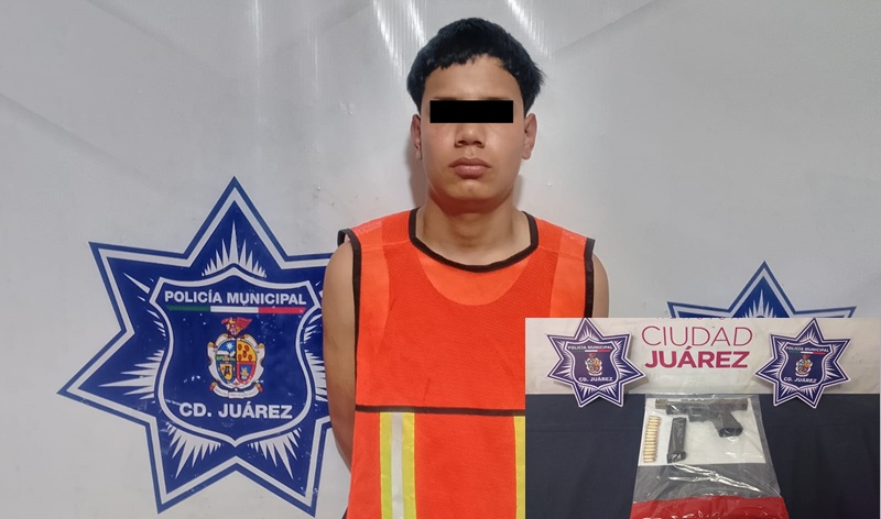 Ciudad Juarez, Chihuahua – Elementos de la Secretaría de Seguridad Pública Municipal arrestaron a Aarón Adrián R. S., por su presunta responsabilidad en la comisión de delitos contra la ley federal de armas de fuego y explosivos.