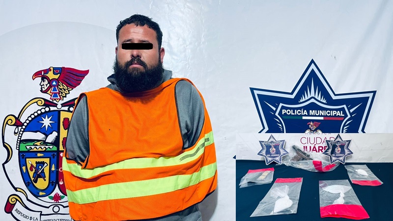 Ciudad Juarez, Chihuahua – Elementos de la Secretaría de Seguridad Pública Municipal arrestaron a Antonio H. G., por su presunta responsabilidad en la comisión de delitos contra la ley federal de armas de fuego y explosivos y delitos contra la salud.